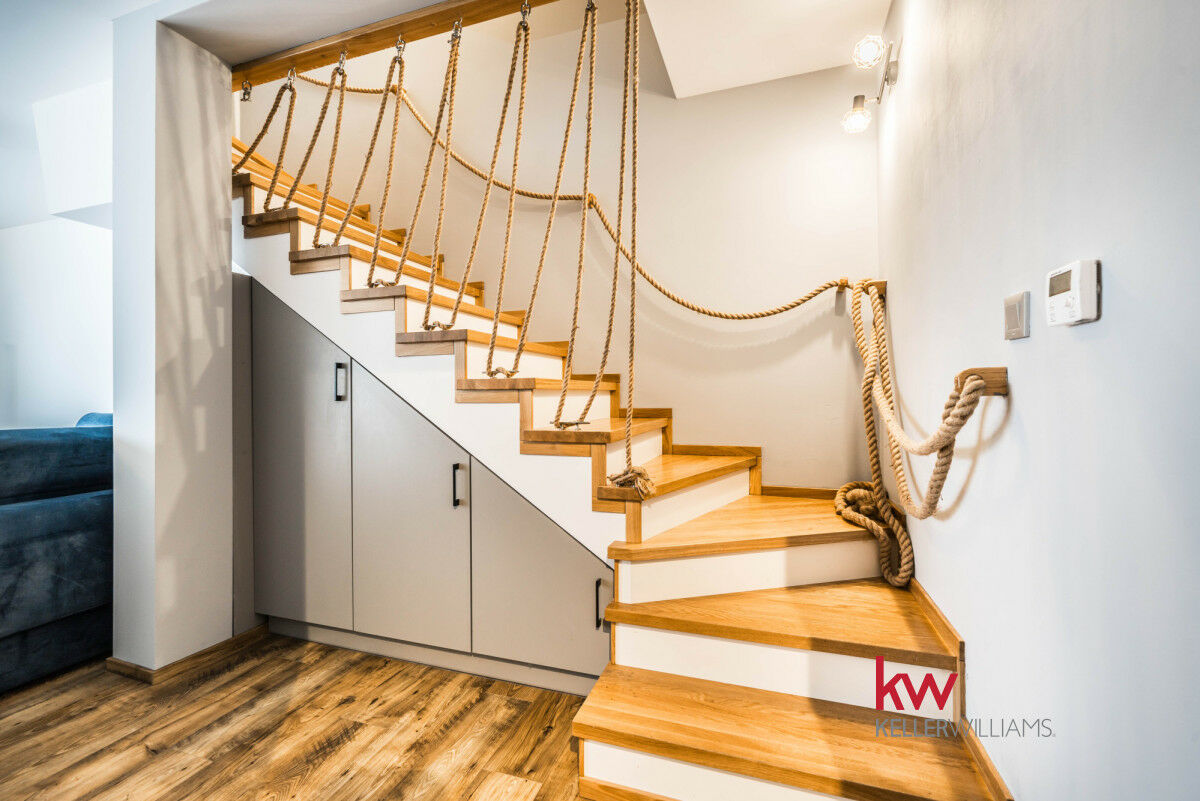 Klimatyzacja: Urządzenia zamontowane są zarówno w salonie, jak i na piętrze, zapewniając komfort termiczny przez cały rok.